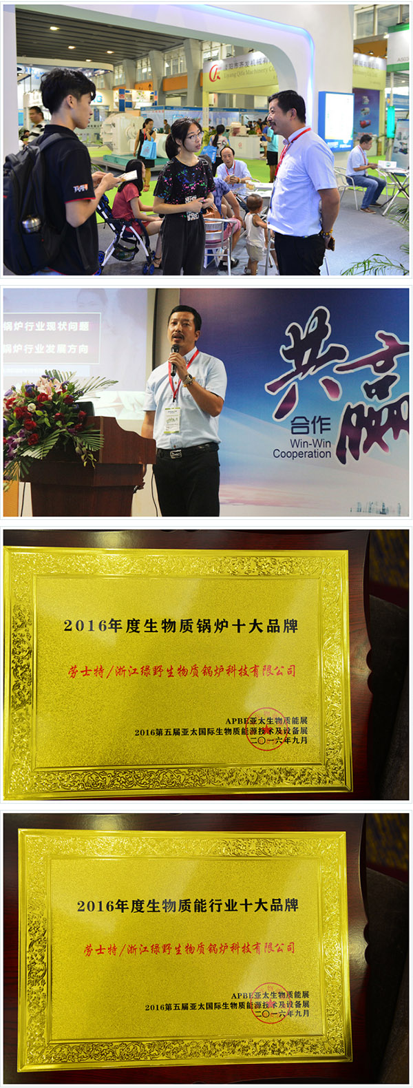 2016年9月28日,万众瞩目的第五届亚太生物质能展在广交会展馆圆满结束,展会上海内外客商云集,众多生物质大咖集聚,作为大咖之一的劳士特锅炉,第五次进军亚太生物质能展也以胜利告终,战果丰硕。劳士特产品与技术得到了客商们的一致好评和业界的认可,劳士特CEO郑文虎出席2016第三届亚太生物质热能高峰论坛并发表精彩演讲,在展会答谢晚宴上,劳士特还被评为“2016年度生物质锅炉十大品牌”与“2016年度生物质能行业十大品牌”。