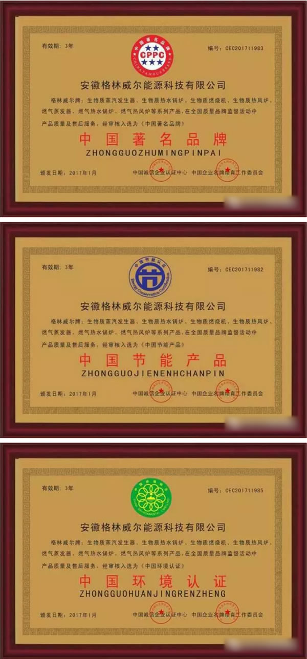 格林威尔依托雄厚的资金实力和丰富的人力资源,获得多项专利技术,获得ISO9001质量管理体系认证,中国环境标志产品认证,中国节能产品认证,中国著名品牌认证等,融合德国先进技术,先后研发出全国首台卧式无炉排锅炉、全国首个全时水冷炉膛、全国首台集成换热式锅炉,从而奠定了行业的技术领先地位!