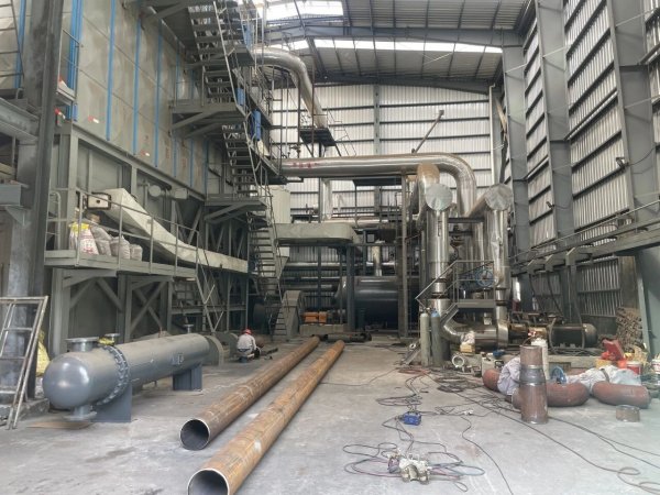 该项目总建筑面积达8100平方米,核心建设内容聚焦生物质能源高效转化与清洁利用,主要包括三大建设板块:一是基础设施建设,新建原料仓库、导热管道、应急车间等核心构筑物,目前已全部完成主体结构施工,满足设备进场安装条件;二是核心生产设备购置安装,新增装载机、输送系统、投料系统、液压装置等前端处理设备,以及燃热锅炉、强制循环系统、旋风分离器等核心制热装备,当前各类设备已完成进场验收,安装人员正按照施工规范开展精准装配;三是环保配套设施建设,SCR炉外脱硝设备、余热锅炉、蒸汽发生器、高效除尘设备及脱硫塔等环保处理设施同步安装,确保项目投产后排放达标。